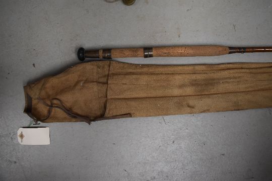 A vintage cane fishing rod approx 11ft unmarked with sleeve