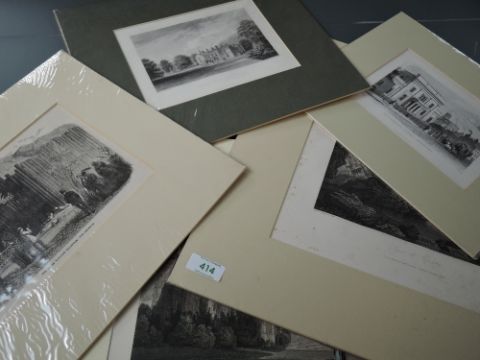 An engraving after Harwood, Tiviot Dale Chapel, Stockport, 13 x 18cm, Walton Hall, Lancashire, 15 x 20cm, an engraving The Havre Marime Exposition, 15 x 23cm, an engraving after Farington, Nunnery, 19th century, 20 x 27cm, and an engraving after Buckley, Ashton Hall, 19th century, 24 x 30cm