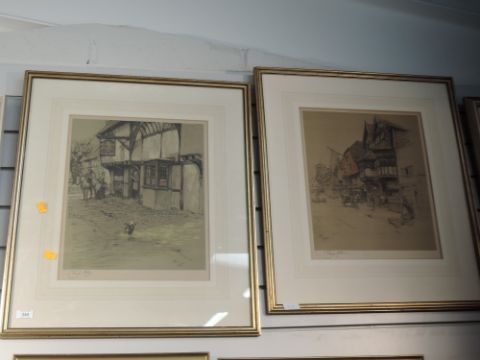 Two prints, after Cecil Aldin, Old English Inns series, The Bell Inn, signed, framed and glazed 41 x 34cm, and a similar print, signed and framed, 41 x 34cm