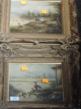 A pair of oil paintings, K Young, duck ponds, period style, framed and glazed, 19 x 22cm