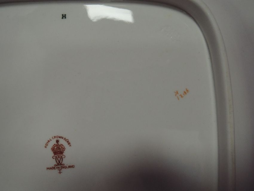 A Royal Crown Derby part tea service in excellent condition throughout comprising of six tea cups, saucers and cake plates and larger serving plate pattern 9021