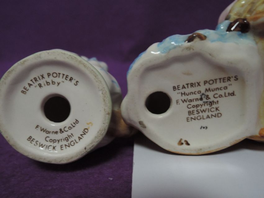 Two figure sets for Beatrix Potter on a BP3A back stamp Humca Munca and Ribby