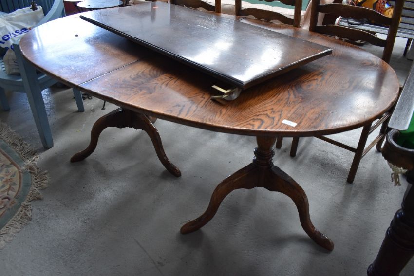 A top quality reproduction, Titchmarsh and Goodwin or similar, double pedestal oak dining table , with extension leaf closed size approx. 166 x 108cm, additional leaf 48cm