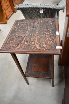 An Arts & Crafts plant stand/occasional table, square form, approx. width 42cm height 72cm