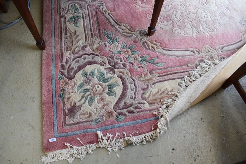 A large Chinese carpet square having pink ground , approx 300 x 214cm