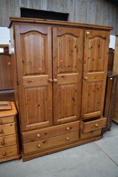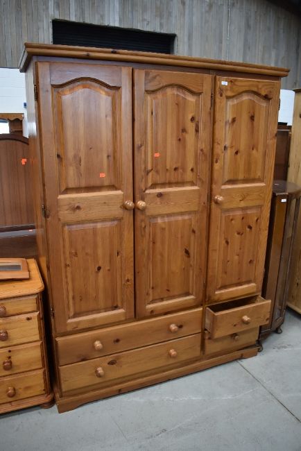 A modern pine triple wardrobe, Kenilworth farmhouse design, having drawer base, width approx. 140cm