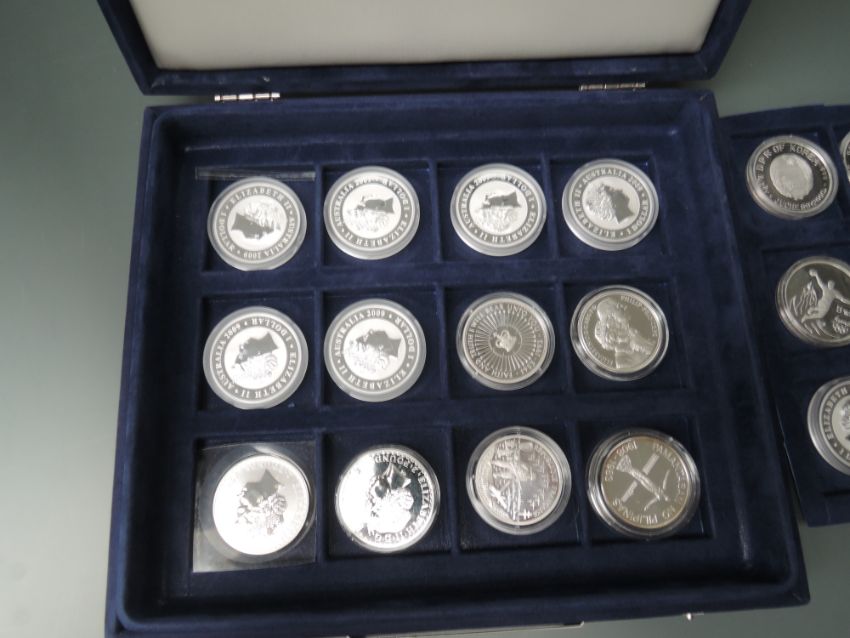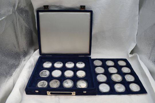 A collection of 24 silver crown sized coins including Australian Koala's, Commemoratives etc in fitted case