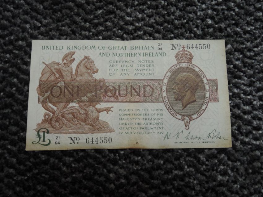 A United Kingdom of Great Britain & Northern Ireland Third Fisher Issue 1 Pound Note Z194 No 644550
