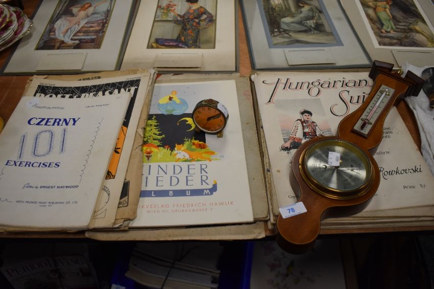 A aneroid barometer and a vintage metal Oris Alarm clock.