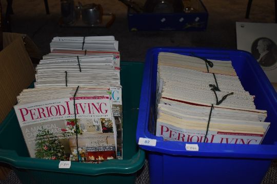 Two containers of Period Living magazines.
