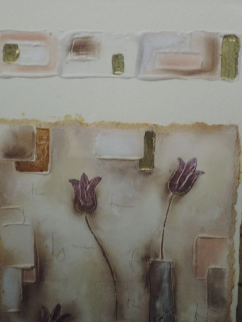 A pair of mixed media pictures, Kevin B, Vase I and Vase II, indistinctly signed, 69 x 24cm, framed and glazed