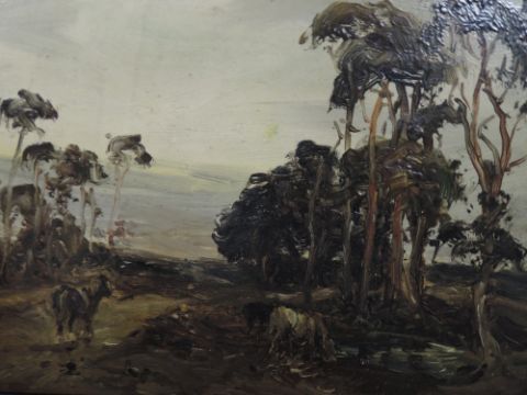 An oil painting on board, William Manners, hilltop copse, signed, 17 x 26cm, framed