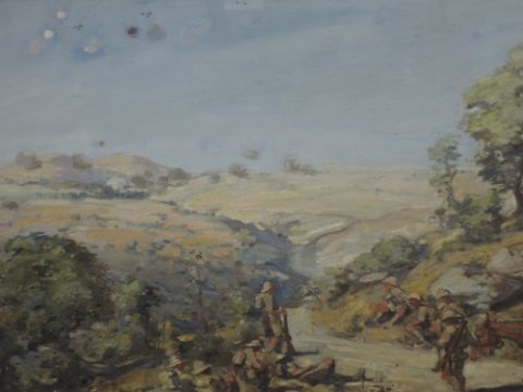 An oil painting, Denovan Adam, Macedonia Varda front, signed and attributed verso, 40 x 50cm, framed and glazed