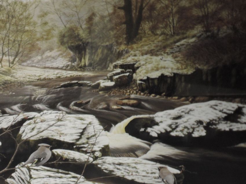 A Ltd Ed print, after David Hall, Waxwing Winter, signed, numbered 19/250, 46 x 50cm, framed and glazed