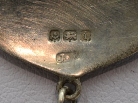 Condition Report. size approx 27mm wide, 28mm long without drop and 40mm with drop. enamel in good condition, chain and loop do not look to be original. chain has some wear.