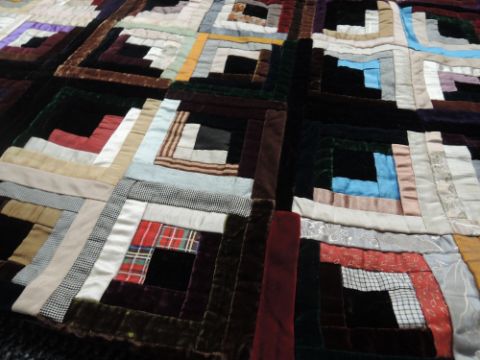 A small log cabin quilt, around early 20th century,using bright silks and velvets amongst other fabrics.superb condition throughout, the wool backing fabric appears to perhaps be a little later.
