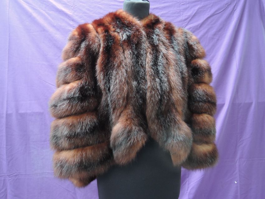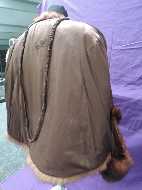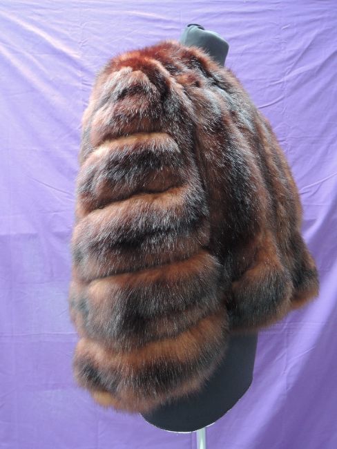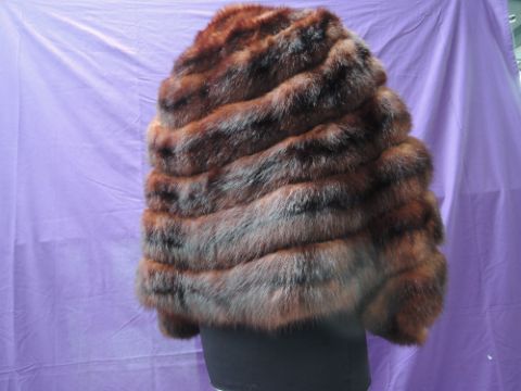 One very decadent vintage 'Bradleys' mink stole or wrap, made up of bands of mahogany toned mink(thought to be dyed) interspersed with bands of fabric, sumptuously lined and having internal straps. Very beautifully made and quite an unusual style,plump and very soft and supple.