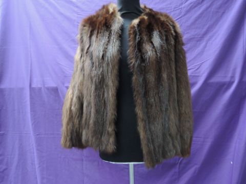 A short vintage fur jacket having leather inserts to back of arms, fully lined and in soft and supple condition.