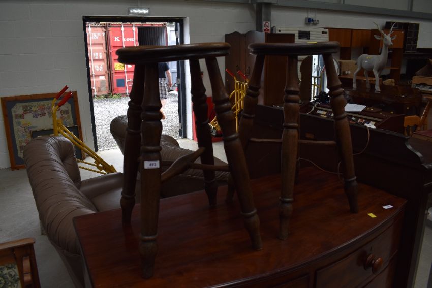 A pair of 19th Century turned frame stools, having shaped seats, height approx. 55cm