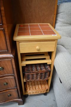 A modern beech and tile top kitchen trolley, approx. 37cm
