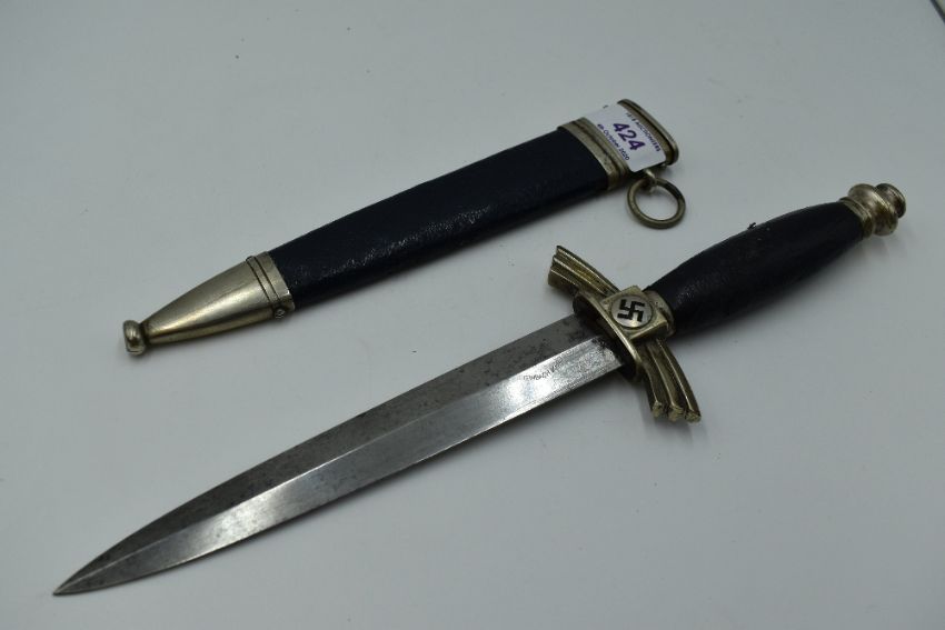 A German Third Reich DLV Dagger with black grip and swastika motif, blade F & A Helbig Steinbach, with black scabbard