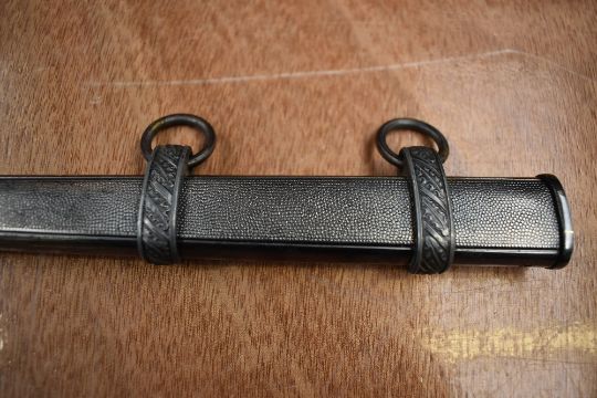 A German Luftwaffe Dagger c1937 with plastic and silver wire grip, pommel decorated with oak leaf and swastika, silver wire portepee knot, blade marked Eickhorn Solingen, with metal scabbard