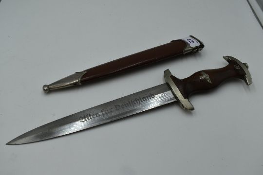 A German SA Service Dagger c1933 with metal scabbard, grip with National Socialist Emblem and SA Emblem, blade marked Alles Fur Deutschland (everything For Germany) RZM M7/18 1938