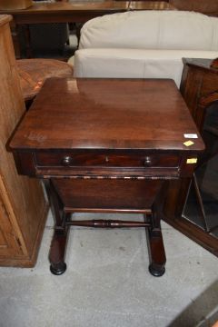 A William IV mahogany work table, top approx. 52 x 50cm with sewing drawer under on typical frame
