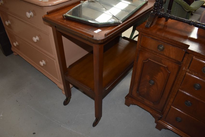 A composite part Edwardian oak and mahogany tea trolley, width approx. 78cm
