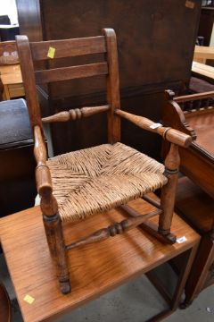 A period oak childs rocking chair having sea grass seat, signs of past worm but not active