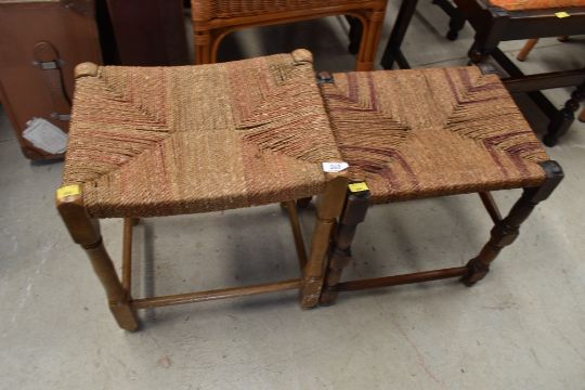 Two traditional turned frame and rush seated stools