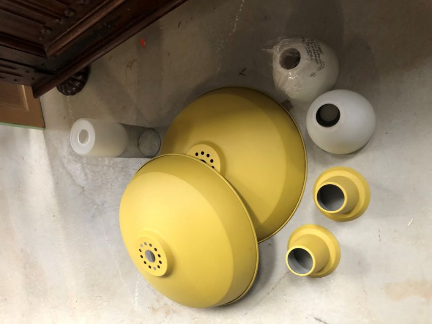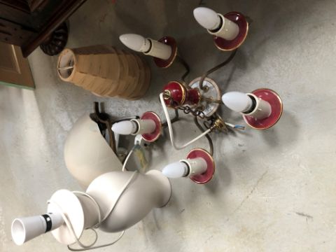 A large selection of light fittings including glass electroleir