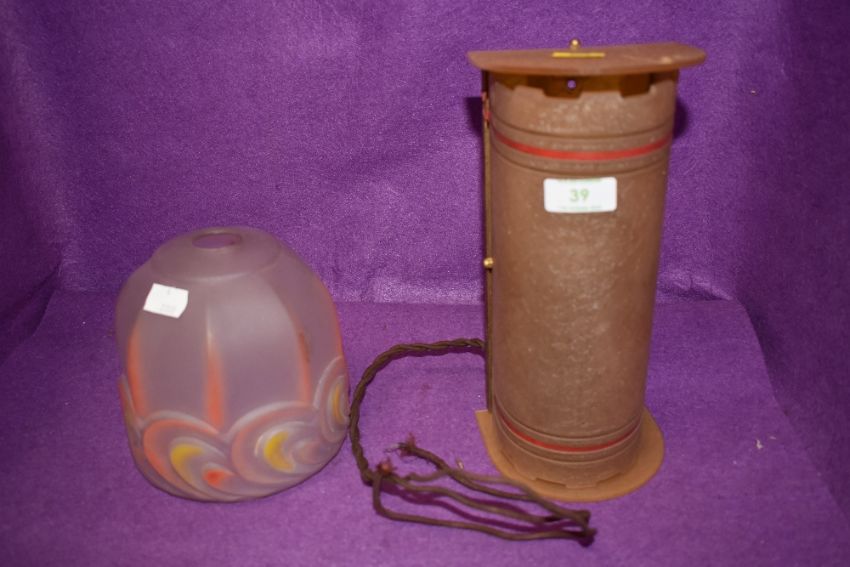A vintage early plastic wall or ceiling Mounted light and an art deco lamp shade.