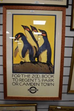 A large framed and mounted Print after Charles Paine depicting four Penguins.
