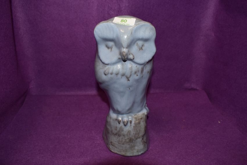 A studio pottery figure of and owl by David Sharp of Rye in a blue slipway glaze