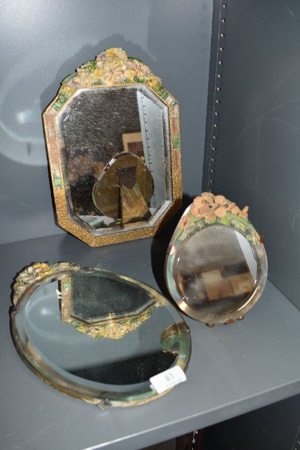 Three vintage Barbola dressing table mirrors.