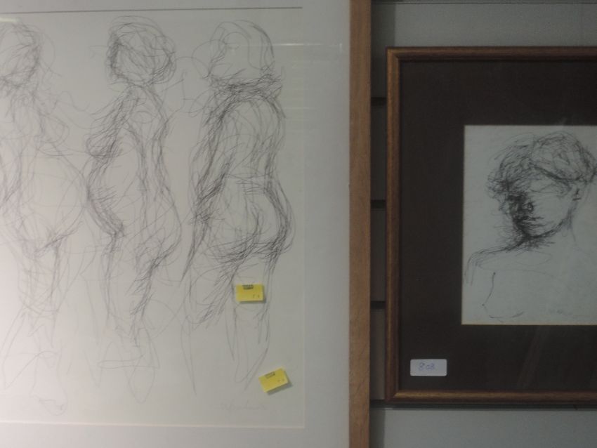 Two Sketches, Michael Jenkins, nude studies, inc pregnant lady, signed, 40 x 44cm, framed and glazed, and a head study, signed, 19 x 14cm, framed and glazed