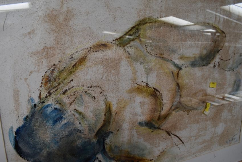 A mixed media picture, Michael Jenkins, Nude with blue hair, signed, 55 x 74cm, framed and glazed