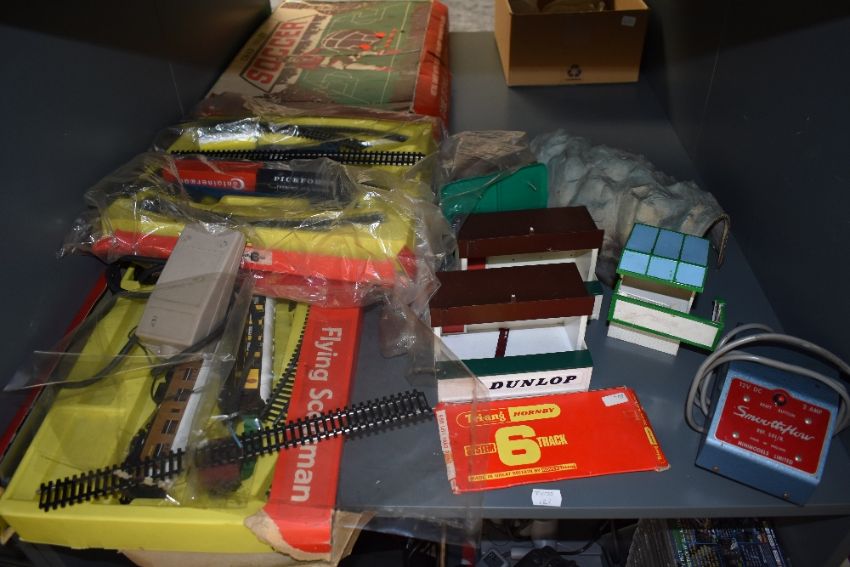 Two Triang Hornby 00 gauge part Train Sets, Flying Scotsman with 4-6-2 loc & tender, three carriages, track etc and Model Electric Train Set with 0-6-0 Locomotive with rolling stock and track along with extra accessories