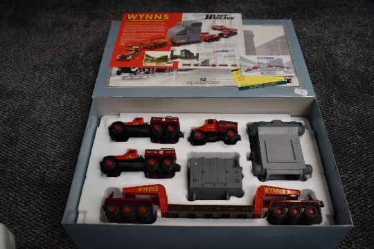A Corgi 1:50 scale Limited Edition Heavy Haulage diecast, Diamond T Ballast (x2) 24 Wheel Girder Trailer with Boiler Load & Scammell Highwayman Ballast, Wynns, boxed 31009, with certificates and as new