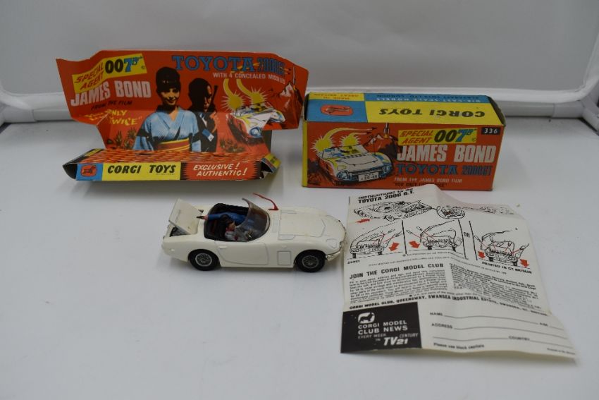 A Corgi diecast, James Bond Toyota 2000GT, in white with black interior, with bandit and driver present, on card display stand with Instruction Leaflet, in original box 336