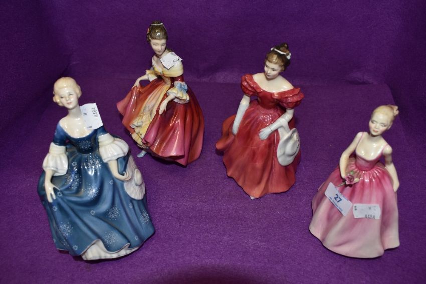 A selection of figurines of ladies in dress including Royal Doulton