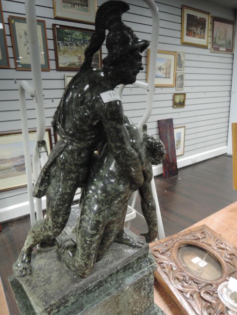 A large carved marble statue on base depicting Greek mythological scene, possibly from the grand tour,intricate detail and carving throughout, a repair to arm and slight chips to fingertips.