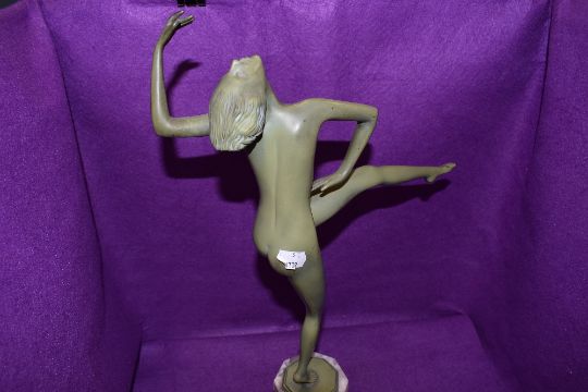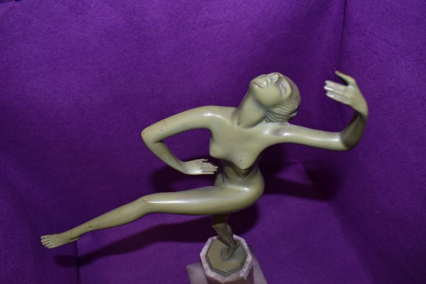 An impressive art deco green patina bronze dancing figure Tanzer (The Dancer) circa 1930 by Felix Weiss Austrian born sculpture white marble base standing 62cm tall