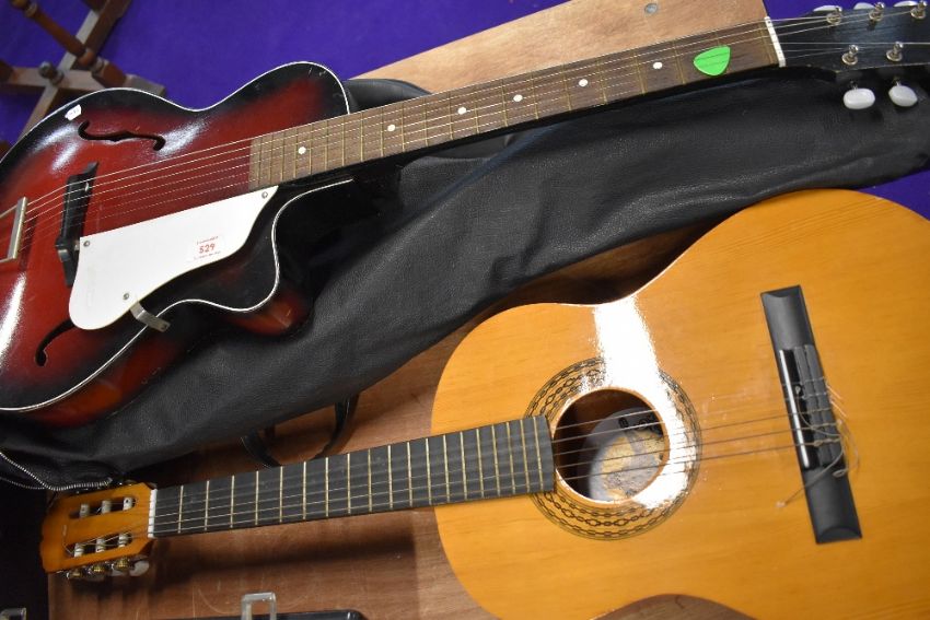 A vintage Egmond acoustic guitar and a BM junior guitar