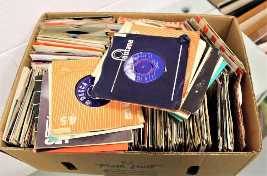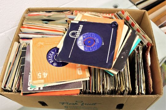 A large box of various 7' singles.