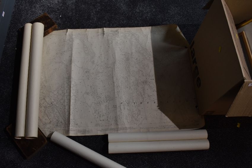 Maps. A small selection of rolled OS maps. Comprising: Cumbria - Sheet SD 40 NW (1977) Cartmel Fell & Whitbarrow; Cumbria - Sheet SD 48 SW (1977) Witherslack, Lindale & Newton; South Westmorland - Witherslack and Meathop (1914); South Westmorland - Witherslack and Whitbarrow (1914). (4)