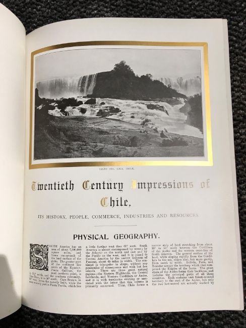 Travel. Lloyd, Reginald - Twentieth Century Impressions of Chile: Its History, People, Commerce, Industries, and Resources. London: 1915. Full maroon morocco, gilt. Hinges worn at extremities. A VG copy. Scarce. (1)