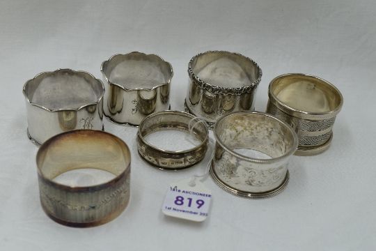 Seven HM silver napkin rings of assorted designs, approx 138.6g