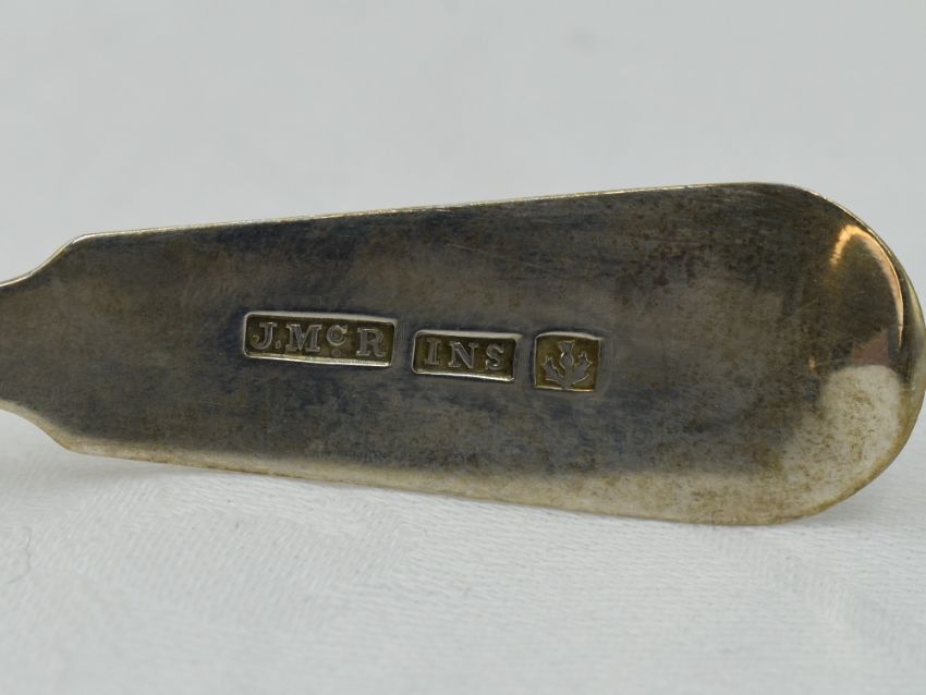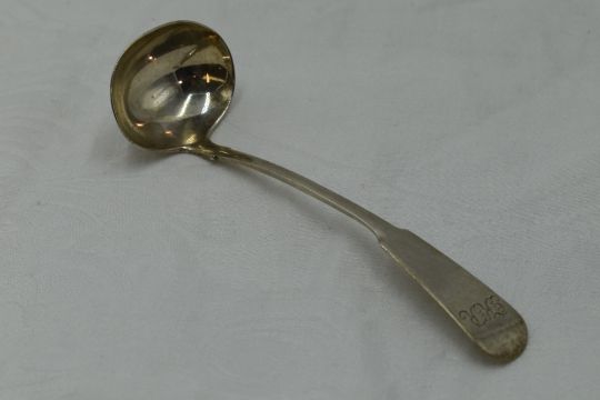 A Victorian Scottish provincial silver toddy ladle of fiddle back form bearing monogram GKR to terminal, Inverness, John MCrae